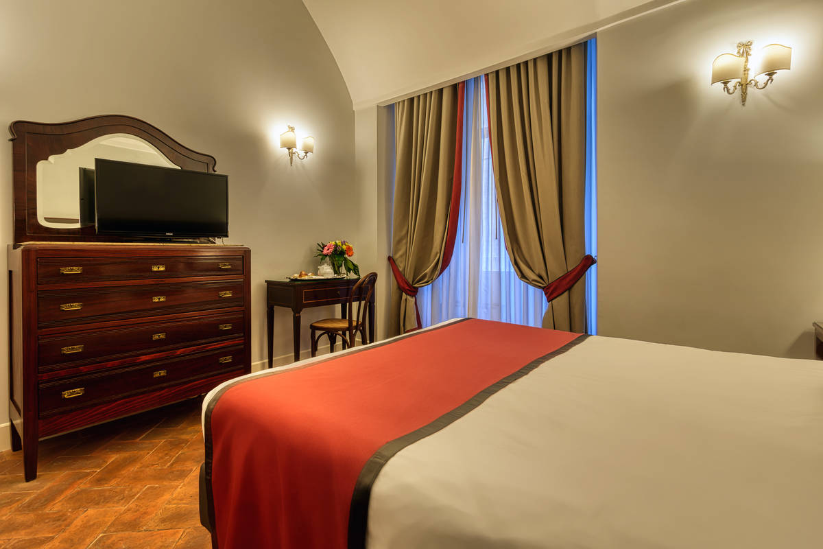Our Comfort Rooms range between 16 and 25 sqm, have decors in varied colour schemes and antique furnishings. They offer an intimate and comfortable atmosphere. Refined decoration, discreet luxury, cosy atmosphere, handsome fabrics, in a style combining an old neapolitan elegance and upscale-hotel convenience.